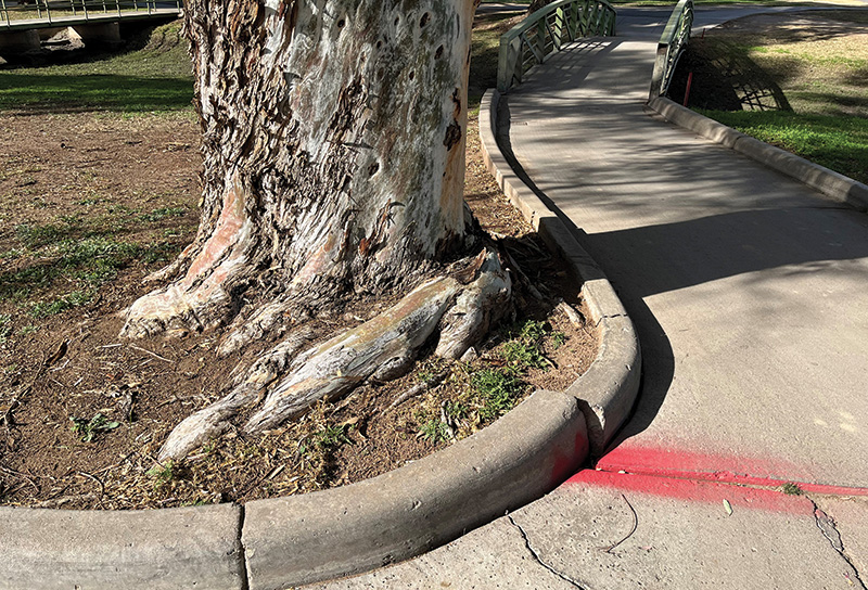 Massing around greens and tees. Large trees are often problematic when placed near tees and greens because they cast excessive shade, compete for water and nutrients, and create surface roots that become a trip hazard and damage cart paths. Small trees usually provide massing, delineation of space and aesthetic appeal without the negatives associated with large ones.