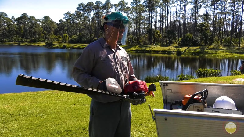 Portable gas power tools such as string trimmers, hedge trimmers and leaf blowers may look small and harmless compared with larger equipment. However, if an operator doesn’t follow the correct safety protocols, these tools can present a significant hazard to your crew. These tools are so prevalent on the golf course because they’re so efficient. Unfortunately, if mishandled, that efficiency can lead to accidents in which these tools cause foreign objects to fall, splash or be thrown with a considerable amount of force. You can see how fast a string trimmer cuts and flings grass — now imagine how quickly it could fling a pebble in a crew member’s direction.