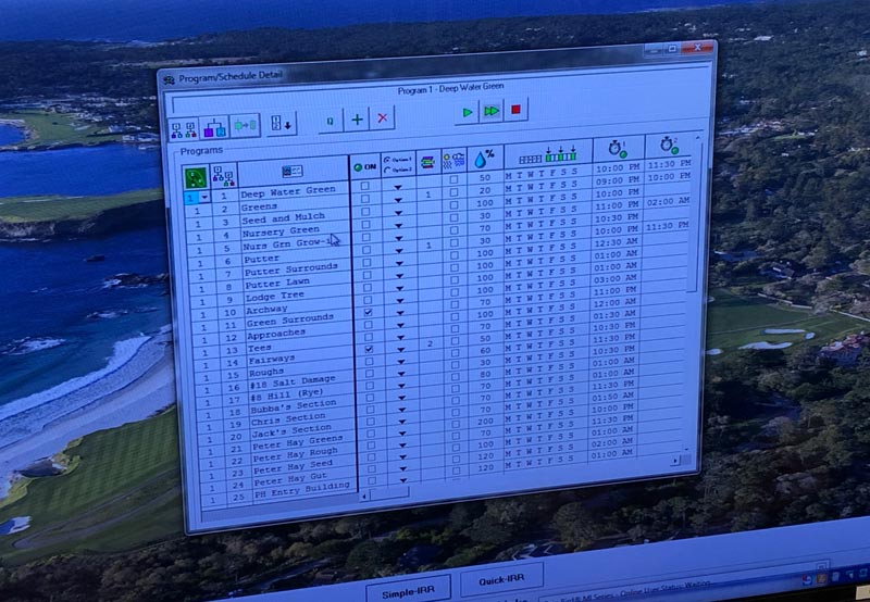 The central control system for Pebble Beach’s Rain Bird IC irrigation system, in the main offices of the maintenance facility.