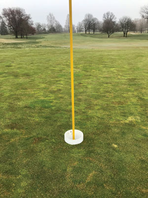Right: Like many golf facilities, Echo Lake Country Club has used elevated cup liners to prevent golfers from touching cups and flagsticks. The idea was shared widely among superintendents via social media.