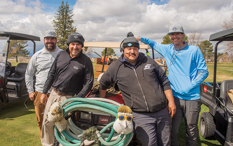 Some of Savage’s crew at CommonGround, from left, assistant superintendent Clinton Edger, irrigation foreman Francisco Guerrero, equipment manager Omar Lozano and Savage.